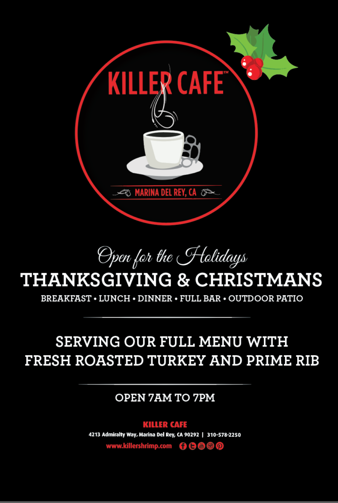 We’re also ready to try another member to the family, Killer Cafe, bringing you the best waterfront breakfast and lunch from 7am-3pm daily! Come see us at any of our spots and don’t forget to push the winecase for entry into our speakeasy, Killer Yacht Club, the perfect spot for a private party or an after-the-dinner party with the best Live Music in town.